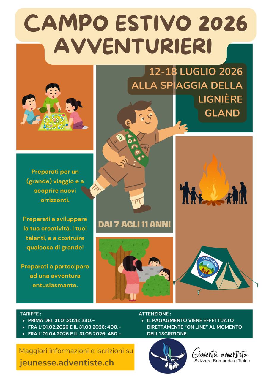 siamo lieti di invitarvi a condividere e partecipare attivamente al Campo Scout Avventurieri, organizzato dal dipartimento GA della FSRT si svolgerà a Gland nella Svizzera francese. dal 12 al 18 …
