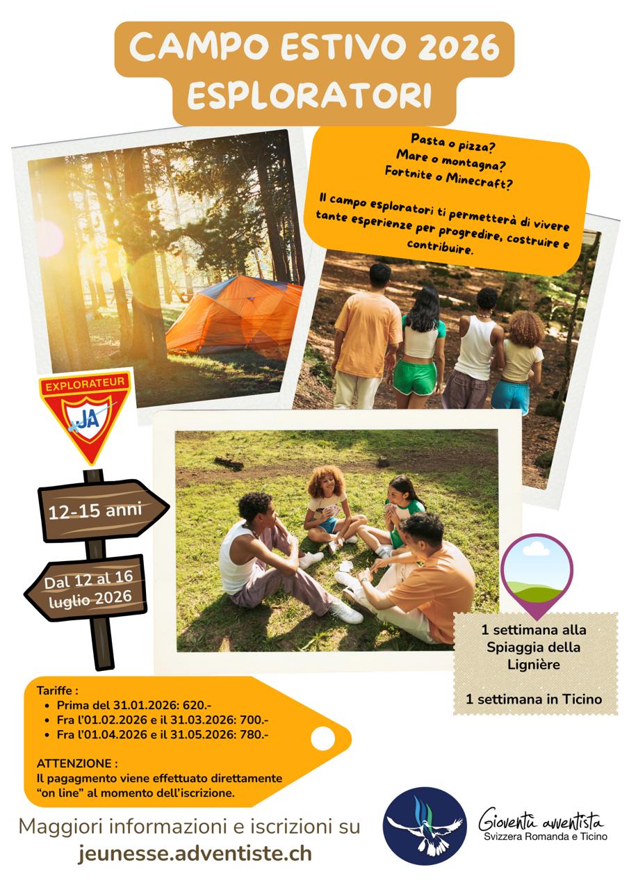 siamo lieti di invitarvi a condividere e partecipare attivamente al Campo Scout Esploratori, organizzato dal dipartimento GA della FSRT si svolgerà a Gland nella Svizzera francese. dal 12 al 16 …