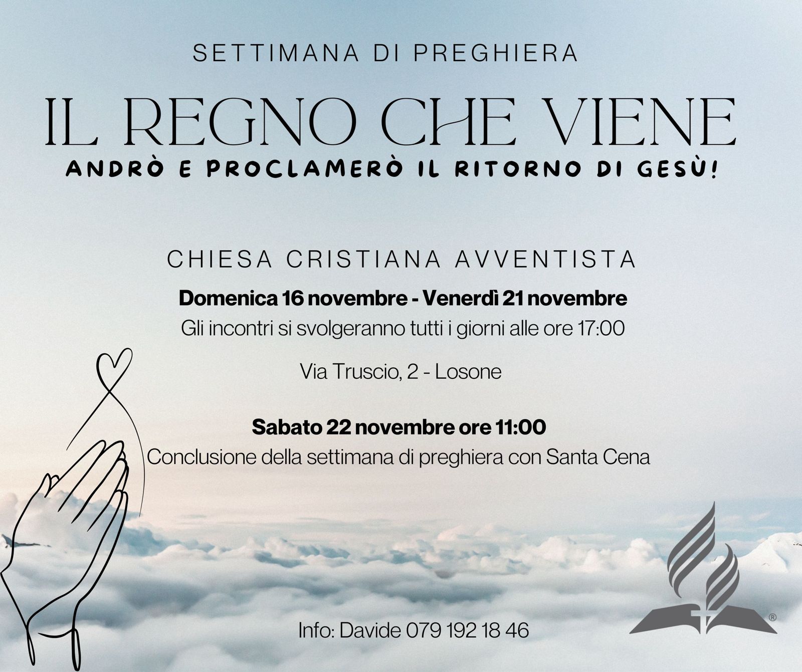 Vi invitiamo calorosamente a partecipare alla settimana di preghiera che si svolgerà da: