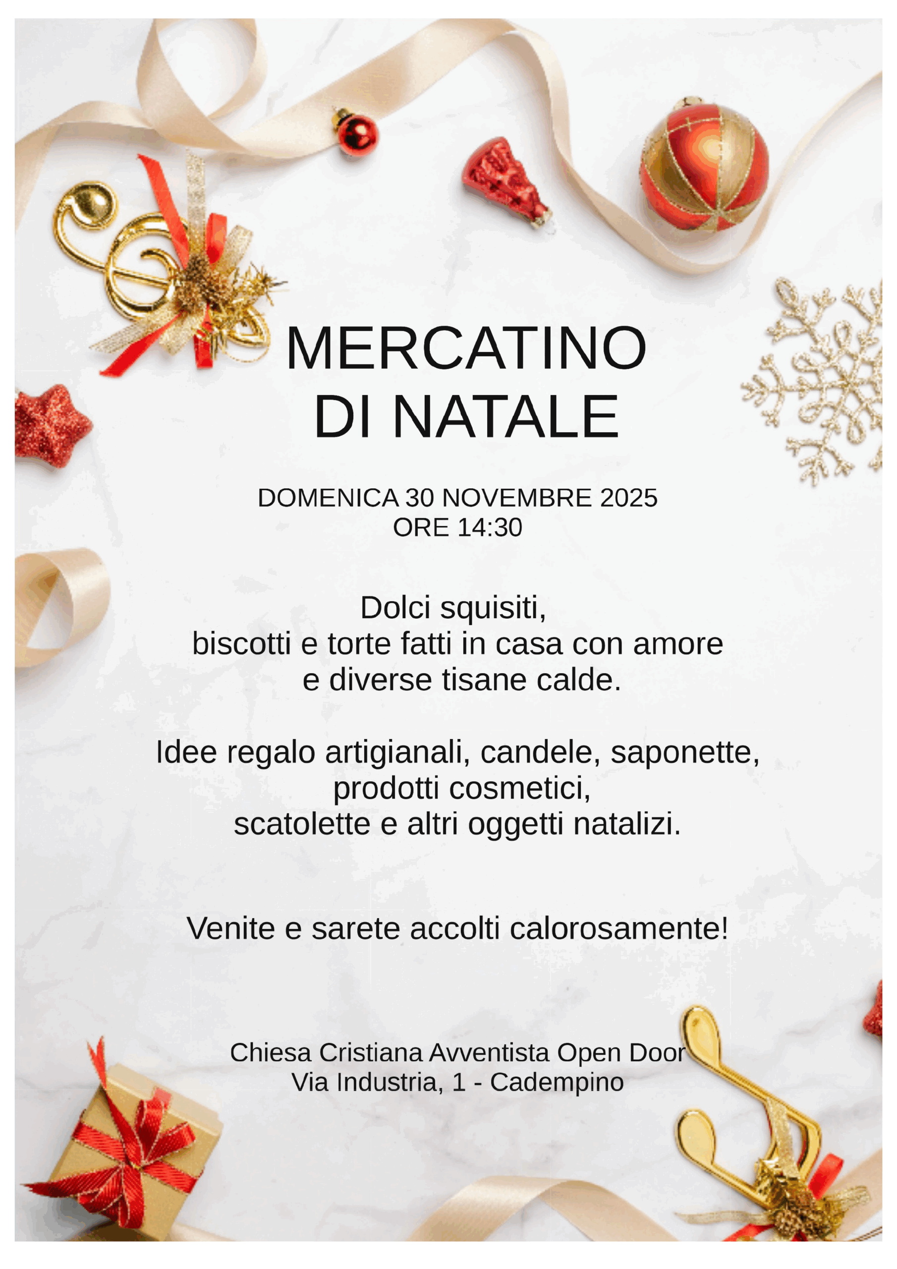 siamo lieti di invitarvi al Mercatino di Natale organizzato dalla comunità Open Door